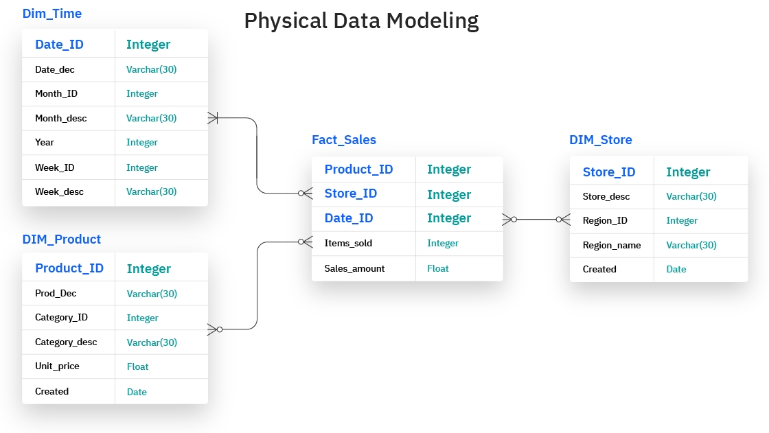 They provide a schema for how the data will be physically stored within a database. As such, they’re the least abstract of all. They offer a finalized design that can be implemented as a relational database, including associative tables that illustrate the relationships among entities as well as the primary keys and foreign keys that will be used to maintain those relationships. Physical data models can include database management system (DBMS)-specific properties, including performance tuning.